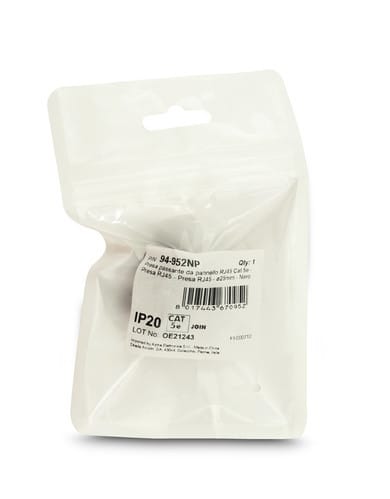 Tipologia: Cat.5eFissaggio: a pannelloSpessore pannello: 1-8mmDiametro foro: ø25mm** Caratteristiche Generali **Genere: PresaColore: NeroOrientamento: DrittoTipo Connettore A: RJ45Genere A: PresaTipo Connettore A: Presa RJ45Tipo Connettore B:RJ45Genere B: PresaTipo Connettore B: Presa RJ45** Caratteristiche Elettriche **Schermatura: no
