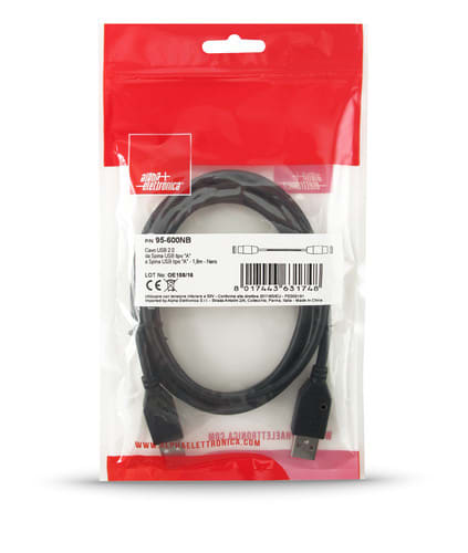 ALPHA ELETTRONICA SR - ALP95-600NB Cavo USB 2.0 da USB tipo-A Maschio a USB tipo-A Maschio - 0,48 Gbps - 1,8m - Nero