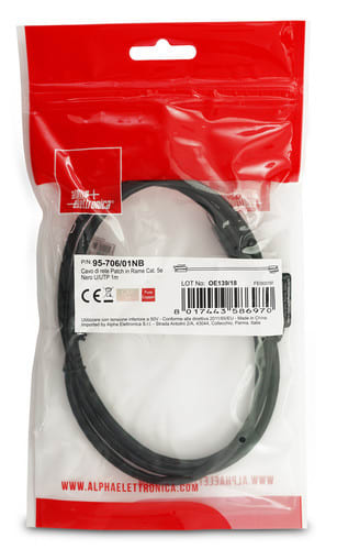 ALPHA ELETTRONICA SR - ALP95-706/01NB CAVO PATCH CAT5E 1M U/UTP NERO.CU.POLY - 95-706/01NB