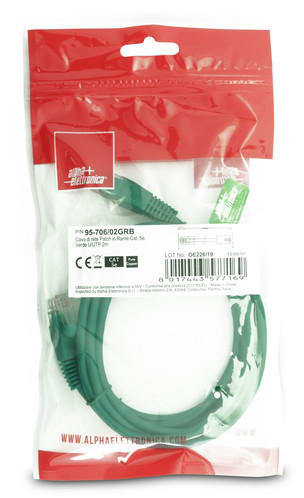 ALPHA ELETTRONICA SR - ALP95-706/02GRB CAVO PATCH CAT5E 2M U/UTP VERDE.CU.POLY - 95-706/02GRB