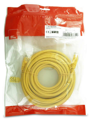 ** Caratteristiche **Cat.: 6Costruzione: U/UTPCollegamenti: DrittoStandard: EIA-TIA 568B - ISO/IEC 11801Colore cavo: GialloLunghezza Cavo: 10mGuaina cavo: PVCImpedenza: 100ohmSchermatura: Non schermatoTipo conduttori: TrefoloMateriale conduttori: Rame PuroSezione conduttori: AWG24Finitura contatto : Dorato** Connettore A **Tipo Connettore A: Spina Modulare 8P8C** Connettore B **Tipo Connettore B: Spina Modulare 8P8C