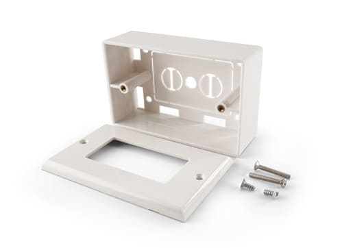 Scatola da parete profondità 36mm.Dimensioni: 115x70x36mmColore: BiancoCompleto di Kit viti e cover.
