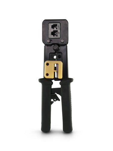 La pinza è compatibile anche con i connettori RJ45 tradizionali.** Caratteristiche Generali **Funzione: CrimpaturaAdatta per connettori: RJ45 8P8C, RJ12 6P6C, RJ11 6P4CChiusura: a cricchettoInserto: fissoMateriale corpo: AcciaioMateriale impugnatura: PlasticaForma impugnatura: Antiscivolo ed ergonomica