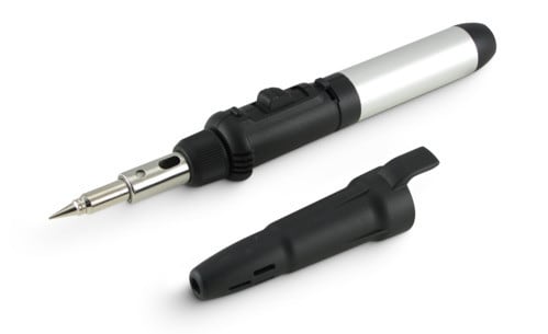 Il saldatore miniaturizzato in formato tascabile con accensione piezoelettrica è la soluzione ideale per tutti i compiti di saldatura dove non è disponibile la rete elettrica. Torcia con punta e tappo di saldatura Con accensione piezoelettrica automatica Con serratura di sicurezza Lunghezza fiamma: 55mm (regolabile) Temperatura saldante: 210 ~ 450 ° C Torcia: 1300 ° C Capacità contenitore gas: 17ml Tempo di funzionamento (un riempimento di gas): 60 minuti, a metà di impostazione. Butano non incluso ** Caratteristiche Generali ** Alimentazione: Gas Tipo Gas: Butano Durata Carica: 60min Funzioni: Saldatore, Aria calda Temperatura: 210/450°C Materiale corpo: Plastico Dimensioni: 245mm x 35mm Stile punta: Conica