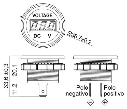 Voltmetro digitale 12-28VDisplay a LED di colore RossoFissabile a pannello** Caratteristiche Generali **Grado Protezione: IP54** Caratteristiche Elettriche **Tensione d'ingresso: 12‑24Vdc** Caratteristiche Meccaniche **Dimensioni (LxWxH): 36.7 x 36.7 x 33.6mmMateriale contenitore: PlasticoColore: NeroConnessioni: faston 6,3** Caratteristiche Termiche **Temperatura di lavoro: -10/40°C