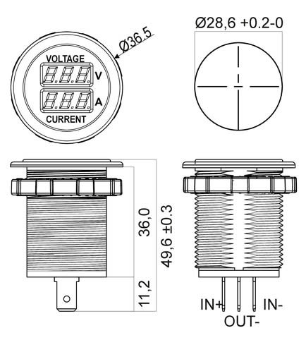 Voltmetro digitale 12-24VAmperometro digitale 0-10ADisplay a LED di colore RossoFissabile a pannello** Caratteristiche Generali **Grado Protezione: IP54** Caratteristiche Elettriche **Tensione d'ingresso: 12‑24Vdc** Caratteristiche Meccaniche **Dimensioni (LxWxH): 36.5 x 36.5 x 49.6mmMateriale contenitore: PlasticoColore: NeroConnessioni: faston 6,3** Caratteristiche Termiche **Temperatura di lavoro: -10/40°C