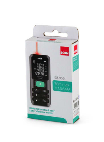 Distanziometro laser appositamente progettato per misurare con precisione la distanza.Integra varie funzioni per misurare facilmente AREA, VOLUME, ADDIZIONE, SOTTRAZIONE. Il distanziometro laser è portatile e facile da usare, ampiamente utilizzato a casa, in cantiere, soprattutto in grandi aree come stanze, appartamenti, edifici, immobili, fabbriche, magazzini, ecc.** Caratteristiche **- Bordo anteriore e posteriore commutabili- Misurazione rapida di distanze, aree, volumi e angoli- Ampio campo dimisura fino a 70 m con precisione di ±1 mm- Metri (m), pollici (in) e piedi (ft) selezionabili- Misura di Pitagora- Misurazione singola/continua- Funzione di addizione e sottrazione- Livello elettronico dotato- Misurazione super veloce di 0,25 s- Memorizza 99 misurazioni di gruppi- Ampio display LCD retroilluminato e chiaro- Visualizzazione del valore massimo e minimo- Impostazione Mute per attivare o disattivare il segnale acustico di misura- Protezione IP54 (resistente alla polvere e agli schizzi):- Funzione di spegnimento automatico/manuale: SÌ** Specifiche **Portata: 70 mPrecisione: ±1mmTipo laser: 635 nm,