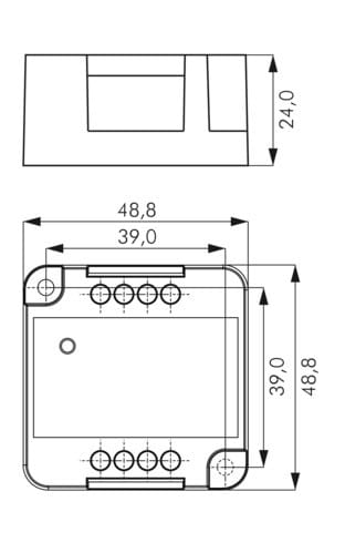 ** Caratteristiche Generali **Funzione: AmplificatoreAdatto per: Monocolore** Caratteristiche Elettriche **Tipo regolazione: Tensione costante (CV)Tensione d'ingresso: 12/24VTensione d'uscita: come ingressoTipo di uscita: morsettiCorrente/Ch: 10An. canali: 1Potenza nominale (12V): 120WPotenza nominale (24V): 240W** Caratteristiche Meccaniche **Lunghezza: 48.8mmLarghezza: 48.8mmAltezza: 24mmGrado di protezione: IP20Materiale corpo: PlasticaColore corpo: Bianco** Caratteristiche Termiche **Temp. di funzionamento: -10 / 40°C** Note **L'alimentatore dovrà essere scelto in funzione del tipo di carico led utilizzato per tensione e corrente.Utilizzare un alimentatore con potenza nominale maggiore rispetto al carico led da alimentare (circa 30%).
