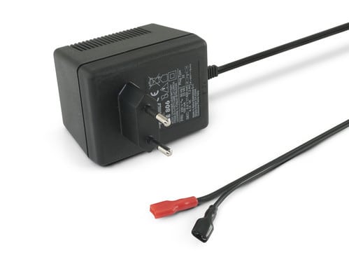 ** Caratteristiche **Ricarica tamponeAdatto per batterie 6V, capacità compresa da 1,3Ah a 7Ah** Caratteristiche Generali **Costruzione: pluginTipo regolazione: CC + CVClasse isolamento: IIAdatto per batterie: 6VGrado Protezione: IP20** Caratteristiche Elettriche **Tensione d'ingresso: 230VacFrequenza: 50HzTensione d'uscita: 6.9VCorrente d'uscita: 600mATolleranza tensione d'uscita: ±5%Protezioni: sovratemperatura, corto circuito, inversione** Caratteristiche Meccaniche **Dimensioni (LxWxH): 77 x 58 x 53.6mmRaffreddamento: passivoMateriale contenitore: PlasticoColore: NeroConnessioni: connettore fissoConnettori: Faston 6,3mm** Caratteristiche Termiche **Temperatura di lavoro: 0/30°C** Modalità di carica **Tipo di carica: Ciclica - TamponeIndicazione di carica: Led giallo accesoIndicazione di fine carica: Led giallo spentoBatteria non connessa o Stand-by: Led spentoConnettore d'uscita: Vedi dettaglio