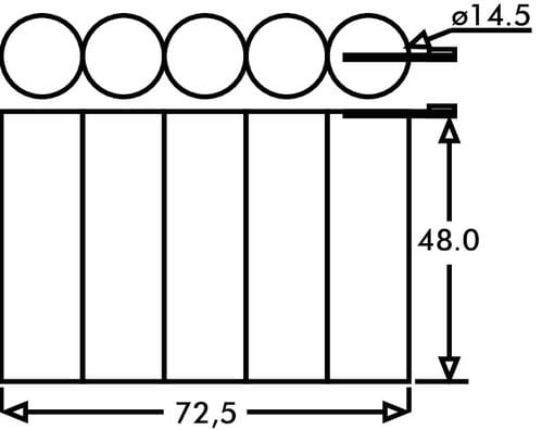 ** Caratteristiche Generali **Codice dimensione: AATecnologia: Ni-MhCodice IEC: HR6N. celle: 5Ricaricabile: si** Caratteristiche Elettriche **Tensione: 6VCapacità: 1600mAh** Caratteristiche Meccaniche **Dimensioni: 48mm x 72.5mm x 14.5mmConnessioni: fili liberi