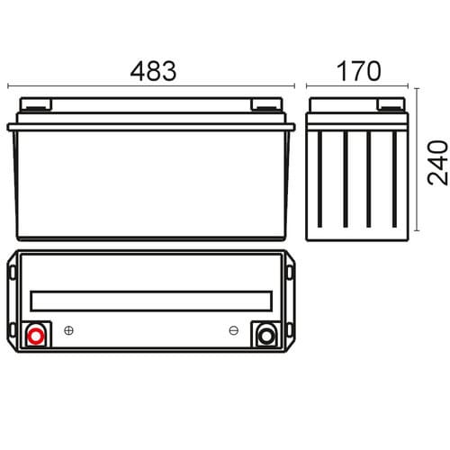 ** Caratteristiche Generali ** Adatto per: UPS Tecnologia: Piombo AGM ** Caratteristiche Elettriche ** Tensione: 12V Capacità: 150Ah ** Caratteristiche Meccaniche ** Dimensioni: 170mm x 483mm x 240mm Peso: 44Kg Connessioni: a vite M8