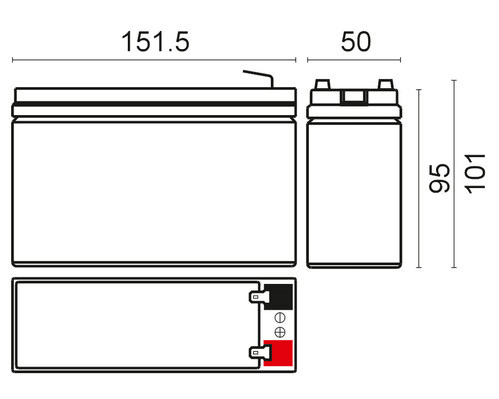 ** Caratteristiche Generali **Adatto per: UPSTecnologia: Piombo AGM** Caratteristiche Elettriche **Tensione: 12VCapacità: 5Ah** Caratteristiche Meccaniche **Dimensioni: 52mm x 151.5mm x 100mmPeso: 1.65KgConnessioni: faston 4.8mm
