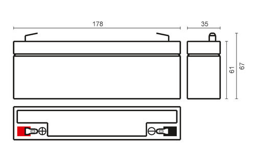 ** Caratteristiche Generali **Adatto per: UPSTecnologia: Piombo AGM** Caratteristiche Elettriche **Tensione: 12VCapacità: 2Ah** Caratteristiche Meccaniche **Dimensioni: 35mm x 178mm x 67mmPeso: 0.78KgConnessioni: faston 4.8mm