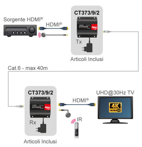 ALPHA ELETTRONICA SR - ALPCT373/9/2 EXTENDER HDMI 4KUHD 1XCAT.6 40M IR - CT373/9/2
