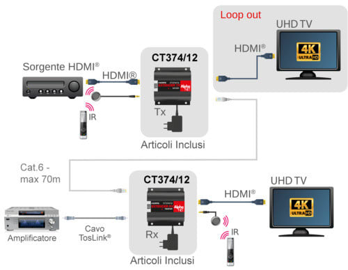 ALPHA ELETTRONICA SR - ALPCT374/12 EXTENDER HDMI 2.0 4K 70M CON IR - CT374/12