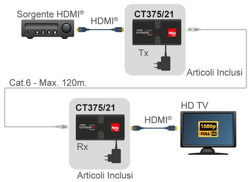 ALPHA ELETTRONICA SR - ALPCT375/21 EXTENDER HDMI 1XCAT6 120M - CT375/21