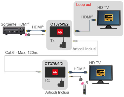 ALPHA ELETTRONICA SR - ALPCT375/9/2 EXTENDER HDMI 1XCAT6 100M IR E LOOPOUT - CT375/9/2