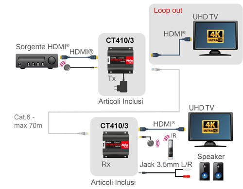 ALPHA ELETTRONICA SR - ALPCT410/3 EXTENDER HDMI 4K-60HZ 70M LOOPOUT IR POC - CT410/3