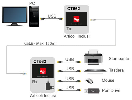 ALPHA ELETTRONICA SR - ALPCT562 EXTENDER 4 PORTE USB 2.0 FINO A 150M - CT562