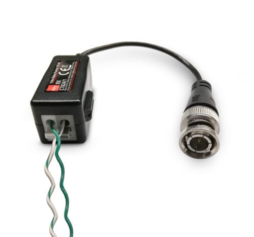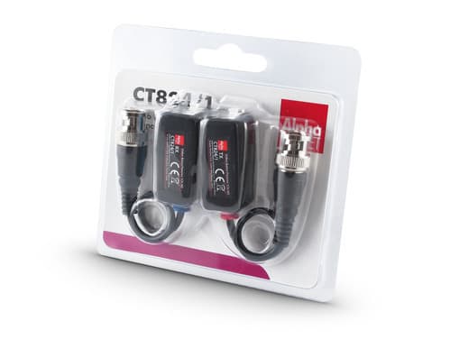 Il balun passivo CT824/1 è un convertitore per la trasmissione del segnale video su cavo twistato Cat5 o superiore per applicazioni TVCC.L'utilizzo di due dispositivi (trasmettitore e ricevitore) consente la trasmissione del segnale video senza necessità di alimentazione esterna.Esso dispone da un lato di un cavetto con connettore BNC per il collegamento del dispositivo video (telecamera e monitor) e dall'altro di una morsettiera a 2 poli a pressione che permette di collegare una coppia a scelta fra le4 contenute all'interno del cavo Cat5.Contenuto confezione: trasmettitore e ricevitore.** Caratteristiche elettriche **Adatto per: Telecamere CCTV, Monitor, DVRFormato Video: PAL, NTSC, SECAM, AHD, HD-CVI, HD-TVIDistanza trasmissione: vedi tabellaCavo consigliato: UTP Cat5 o superiore 24-22AWGAlimentazione: Non richiestaReiezione modo comune/modo differenziale: 60dB typ (15KHz-42MHz)Impedenza: Coassiale 75ohm, UTP 100ohmAttenuazione: 1.5 dB typ Max** Connettori **Video input/output: BNC maschioVideo input/output: a pressione** Protezioni **Sovratensione: Stato solido TVS (Transient Voltage Suppressor)Video Input: 2KV (modo comune)Video Output: 2KV (modo differenziale)** Caratteristiche meccaniche **Corpo: plasticoProtezione: IP20Colore: NeroDimensioni(LxWxH): 35,1x16,7x18,7mmTemperatura di lavoro: -10º ~ 40ºCAttenzione:Non utilizzare in ambienti esterni.