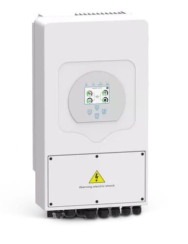 ** Dati ingresso batteria **Tipo di batteria: Piombo acido o ioni di litioIntervallo di tensione della batteria: 40-60VMassimo. Corrente di carica: 135AMassimo. Corrente di scarica: 135ACurva di ricarica: 3 StadiBMS batteria: Autoadattamento** Dati ingresso stringa FV **Massimo. Potenza in ingresso CC: 7800WTensione di ingresso FV: 370V (125V-500V)Intervallo MPPT: 150-425VIntervallo di tensione CC a pieno carico: 300-425VTensione di avvio: 125VCorrente di ingresso FV: 13A+13AMassimo. FV ISC: 17A+17ANumero di tracker MPPT: 2Numero di stringhe per tracker MPPT: 1+1** Dati di uscita AC **Uscita AC nominale e potenza UPS: 6000WMassimo. Potenza in uscita AC: 6600WPotenza di picco (fuori rete): 2 volte la potenza nominale, 10SCorrente nominale di uscita AC: 27,3AMassimo. Corrente AC: 30AMassimo. Passaggio AC continuo: 40AFattore di potenza: Da 0,8 in anticipo a 0,8 in ritardoFrequenza tensione di uscita: 50/60HzTipo di griglia: MonofaseDistorsione armonica corrente: THD