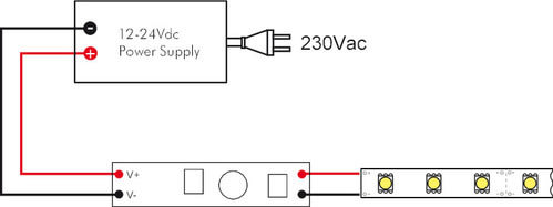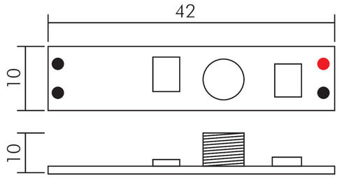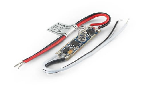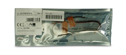 Mini Dimmer con regolazione Touch per nastri monocolore** Tipologia di controllo **ON/OFF: click veloceAumento intensità: Pressione a lungoDiminuizione intensità: Pressione a lungo nuovamente** Caratteristiche Generali **Funzione: ControllerAdatto per: MonocoloreMetodo di controllo: Pressione** Caratteristiche Elettriche **Tipo regolazione: Tensione costante (CV)Tensione d'ingresso: 12/24VTensione d'uscita: come ingressoTipo di uscita: fili liberiCorrente/Ch: 3An. canali: 1Potenza nominale (12V): 36WPotenza nominale (24V): 72W** Caratteristiche Meccaniche **Lunghezza: 41mmLarghezza: 10mmAltezza: 10mm** Caratteristiche Termiche **Temp. di funzionamento: 0 / 40°C** Attenzione **Il profilo di alluminio deve avere un'altezza massima di 10mm.