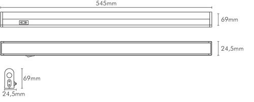 DescrizioneBarra led basso profilo prolungabile con interruttore.Ruotabile di 70°.** Caratteristiche Generali **Tempo di vita L70B50: 30000hNumero cicli di accensione: 15000 cicliTipo di led: smd 2835Numero Led: 56Pezzi in cascata: 18Rischio fotobiologico: Esente** Caratteristiche di Illuminazione **Colore: Bianco naturaleFlusso: 810lmCRI: 80Angolo di emissione: 115°** Caratteristiche Elettriche **Potenza: 12WFattore di potenza PF: 0.7Tens. funzionamento AC: 230Vac (100‑240Vac)Tolleranza d'ingresso: -10% +6%Frequenza: 50-60HzDimmerabile: noClasse isolamento: IIAlimentatore: Integrato** Caratteristiche Sorgente Luminosa **Temp. Colore: 4000K** Caratteristiche Meccaniche **Lunghezza: 545mmLarghezza: 24.5mmAltezza: 69mmFissaggio: Staffe IncluseMontaggio: A parete, A soffittoGrado di protezione: IP20Materiale corpo: Alluminio anodizzatoColore corpo: GrigioDiffusore: Policarbonato opacoConnessioni: Connettori e cavetti inclusiTipo Controllo: Interruttore integratoOrientabile: si** Caratteristiche Termiche **Temp. di funzionamento: -10 / 40°CAttenzioneOgni interruttore controlla solo la relativa barra anche nel caso di collegamento in cascata.Il primo interruttore ** non ** controlla le barre successive.