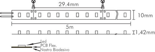 ** Caratteristiche Generali **Tempo di vita L70B50: 20000hNumero cicli di accensione: 10000 cicliFattore di sopravvivenza: 0.9Tipo nastro: CCT RegolabileColore Supporto: BiancoTipo di led: smd 3528n. Led al metro: 120 led/mLunghezza max in cascata: 5mRischio fotobiologico: Esente** Caratteristiche di Illuminazione **Colore: CCT RegolabileFlusso Nastro Led: 2390lm/mFlusso @ 50cm: 2390lmCRI: 80Angolo di emissione: 120°Warm-up (60%): 0.1sFattore mantenimento flusso: 0.96Uniformità colore (SDCM): 6** Caratteristiche Elettriche **Classe energetica: EPotenza Nastro Led: 19.2W/mPotenza 50cm: 19.2WPotenza unità minima: 0.96WTens. funzionamento DC: 24VdcDimmerabile: siAlimentatore: Esterno (non incluso)** Caratteristiche Sorgente Luminosa **Temp. Colore: 3000‑6000K** Caratteristiche Meccaniche **Lunghezza nastro: 5mN. Led/taglio: 6Lunghezza taglio minima: 50mmLarghezza: 10mmSpessore: 1.42mmAltezza: 2mmFissaggio: Biadesivo 3MGrado di protezione: IP20Tipo di protezione: NessunoConnessioni: Cavo libero** Caratteristiche Termiche **Temp. di funzionamento: -10 / 40°C