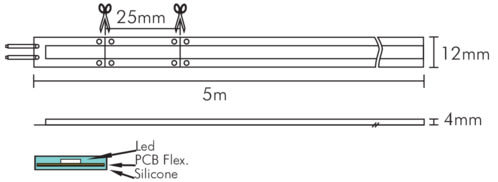 ** Caratteristiche Generali **Applicazione: DecorativaNumero cicli di accensione: 10000 cicliTipo nastro: MonocoloreColore Supporto: BiancoTipo di led: COBn. Led al metro: 480 led/mLunghezza max in cascata: 5mRischio fotobiologico: Esente** Caratteristiche di Illuminazione **Colore: RossoFlusso: 150lmLunghezza d'onda: 624nmWarm-up (60%): 0.1s** Caratteristiche Elettriche **Tens. funzionamento DC: 12VdcAlimentatore: Esterno (non incluso)** Caratteristiche Meccaniche **Lunghezza nastro: 5mLunghezza taglio minima: 25mmSpessore: 2.6mmFissaggio: Biadesivo 3MGrado di protezione: IP65Tipo di protezione: ResinaConnessioni: Cavo libero** Caratteristiche Termiche **Temp. di funzionamento: -10 / 40°C