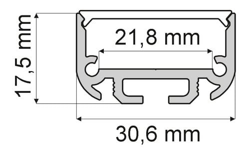 ** Caratteristiche generali ** Composto da: -n. 1 profilo di alluminio da 3m, -n. 1 copertura da 3m ** Caratteristiche Elettriche ** Potenza dissipabile (35°C): 30W/m ** Caratteristiche Meccaniche ** Lunghezza profilo: 3m Larghezza: 30.6mm Larghezza interna: 21.8mm Altezza: 17.5mm Grado di protezione: IP20 Colore corpo: Grigio Diffusore: Policarbonato opaco