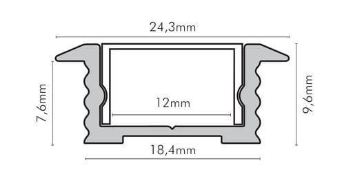 ** Caratteristiche generali ** Composto da: -n. 1 profilo di alluminio -n. 1 copertura ** Caratteristiche Elettriche ** Potenza dissipabile (35°C): 15W/m ** Caratteristiche Meccaniche ** Lunghezza profilo: 2m Larghezza: 18.4mm Larghezza interna: 12mm Altezza: 9.6mm Grado di protezione: IP20 Materiale corpo: Alluminio Colore corpo: Naturale Diffusore: PMMA opaco ** Attenzione ** La copertura in PMMA è più resistente alle temperature e ai raggi UV rispetto alla copertura in Policarbonato (PC). Il profilo illustrato è un componente. Il suo corretto funzionamento con nastri led o moduli led dipende da importanti requisiti di installazione e dimensionamento. La potenza dissipabile è stata calcolata considerando una temperatura ambiente non superiore a 35°C in aria. Condizioni di installazione differenti devono essere opportunamente verificate da personale tecnico. Utilizzare la copertura solo con nastri led IP20. Alpha Elettronica declina ogni responsabilità per danni o malfunzionamenti derivati da un uso inappropriato del profilo.