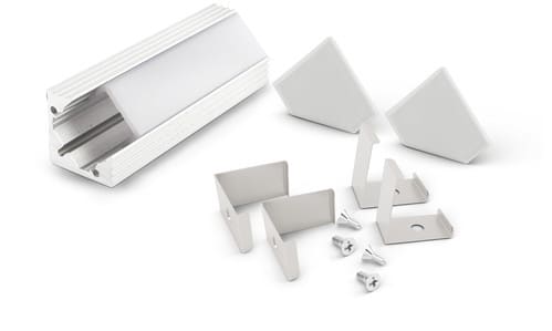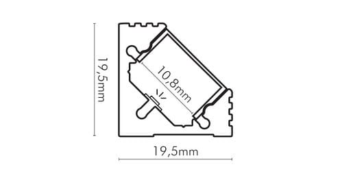 ** Caratteristiche generali ** Kit composto da: -n. 1 profilo di alluminio da 2m, -n. 1 copertura da 2m -n. 2 terminali di chiusura in plastica -n. 4 graffette di fissaggio ** Caratteristiche Elettriche ** Potenza dissipabile (35°C): 25W/m ** Caratteristiche Meccaniche ** Lunghezza profilo: 2m Larghezza: 19.5mm Larghezza interna: 10.8mm Altezza: 19.5mm Grado di protezione: IP20 Materiale corpo: Alluminio verniciato Colore corpo: Bianco Codice RAL: RAL9016 Diffusore: Policarbonato opaco ** Attenzione ** La copertura in PMMA è più resistente alle temperature e ai raggi UV rispetto alla copertura in Policarbonato (PC). Il profilo illustrato è un componente. Il suo corretto funzionamento con nastri led o moduli led dipende da importanti requisiti di installazione e dimensionamento. La potenza dissipabile è stata calcolata considerando una temperatura ambiente non superiore a 35°C in aria. Condizioni di installazione differenti devono essere opportunamente verificate da personale tecnico. Utilizzare la copertura solo con nastri led IP20. Alpha Elettronica declina ogni responsabilità per danni o malfunzionamenti derivati da un uso inappropriato del profilo.
