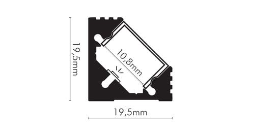 ** Caratteristiche generali ** Composto da: -n. 1 profilo di alluminio da 2m, -n. 1 copertura da 2m ** Caratteristiche Elettriche ** Potenza dissipabile (35°C): 25W/m ** Caratteristiche Meccaniche ** Lunghezza profilo: 2m Larghezza: 19.5mm Larghezza interna: 10.8mm Altezza: 19.5mm Grado di protezione: IP20 Materiale corpo: Alluminio verniciato Colore corpo: Nero Diffusore: Policarbonato opaco ** Attenzione ** La copertura in PMMA è più resistente alle temperature e ai raggi UV rispetto alla coperturain Policarbonato (PC). Il profilo illustrato è un componente. Il suo corretto funzionamento con nastri led o moduli led dipende da importanti requisiti di installazione e dimensionamento. La potenza dissipabile è stata calcolata considerando una temperatura ambiente non superiore a 35°C in aria. Condizioni di installazione differenti devono essere opportunamente verificate da personale tecnico. Utilizzare la copertura solo con nastri led IP20. Alpha Elettronica declina ogni responsabilità per danni o malfunzionamenti derivati da un uso inappropriato del profilo.
