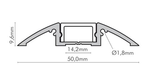 ** Caratteristiche generali ** Composto da: -n. 1 profilo di alluminio da 2m, -n. 1 copertura da 2m ** Caratteristiche Elettriche ** Potenza dissipabile (35°C): 23W/m ** Caratteristiche Meccaniche ** Lunghezza profilo: 2m Larghezza: 50mm Larghezza interna: 14.2mm Altezza: 9.6mm Grado di protezione: IP20 Materiale corpo: Alluminio Colore corpo: Naturale Diffusore: Policarbonato opaco ** Attenzione ** La copertura in PMMA è più resistente alle temperature e ai raggi UV rispetto alla copertura in Policarbonato (PC). Il profilo illustrato è un componente. Il suo corretto funzionamento con nastri led o moduli led dipende da importanti requisiti di installazione e dimensionamento. La potenza dissipabile è stata calcolata considerando una temperatura ambiente non superiore a 35°C in aria. Condizioni di installazione differenti devono essere opportunamente verificate da personale tecnico. Utilizzare la copertura solo con nastri led IP20. Alpha Elettronica declina ogni responsabilità per danni o malfunzionamenti derivati da un uso inappropriato del profilo.