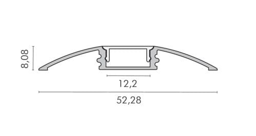 ** Caratteristiche generali **Kit composto da:-n. 1 profilo di alluminio da 2m,-n. 1 copertura da 2m-n. 2 terminali di chiusura in plastica-n. 4 graffette di fissaggio** Caratteristiche Elettriche **Potenza dissipabile (35°C): 23W/m** Caratteristiche Meccaniche **Lunghezza profilo: 2mLarghezza: 52.28mmLarghezza interna: 12.2mmAltezza: 8.08mmPeso alluminio al metro: 150g/mPeso cover al metro: 31g/mGrado di protezione: IP20Materiale corpo: Alluminio anodizzatoColore corpo: NaturaleDiffusore: Policarbonato opaco** Attenzione **Il profilo illustrato è un componente. Il suo corretto funzionamento con nastri led o moduli led dipende da importanti requisiti di installazione e dimensionamento. La potenza dissipabile è stata calcolata considerando una temperatura ambiente non superiore a 35°C in aria. Condizioni di installazione differenti devono essere opportunamente verificate da personale tecnico. Utilizzare la copertura solo con nastri led IP20.Alpha Elettronica declina ogni responsabilità per danni o malfunzionamenti derivati da un uso inappropriato del profilo.Il profilo illustrato non é compatibile con dimmer metal touch JO-CONTR-014.Alpha Elettronica declina ogni responsabilità per danni o malfunzionamenti derivati da un uso inappropriato del profilo.Il montaggio della copertura plastica deve essere effettuata a scorrimento.