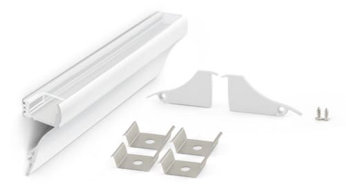 ** Caratteristiche generali **Kit composto da:-n. 1 profilo di alluminio da 2m,-n. 1 copertura da 2m-n. 2 terminali di chiusura in plastica con viti-n. 4 graffette di fissaggio** Caratteristiche Elettriche **Potenza dissipabile (35°C): 30W/m**Caratteristiche Meccaniche **Lunghezza profilo: 2mLarghezza: 17.9mmLarghezza interna: 12.1mmAltezza: 40.6mmGrado di protezione: IP20Materiale corpo: Alluminio verniciatoColore corpo: BiancoDiffusore: Policarbonato trasp.** Attenzione **La copertura in PMMA è più resistente alle temperature e ai raggi UV rispetto alla copertura in Policarbonato (PC).Il profilo illustrato è un componente. Il suo corretto funzionamento con nastri led o moduli led dipende da importanti requisiti di installazionee dimensionamento. La potenza dissipabile è stata calcolata considerando una temperatura ambiente non superiore a 35°C in aria. Condizioni di installazione differenti devono essere opportunamente verificate da personale tecnico. Utilizzare la copertura solo con nastri led IP20.Alpha Elettronica declina ogni responsabilità per danni o malfunzionamenti derivati da un uso inappropriato del profilo.