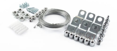 Set di accessori composto da 6 corde per l'installazione a sospensione di pannelli JO395/30120 (30cm x 120cm).Numero di corde: 6Materiale: acciaioLunghezza: 1,5m (regolabile)Spessore corda: ø1,5mmMassimo carico ammissibile: 18Kg (175N)Massimo carico di rottura: 90Kg (885N)** Attenzione **Gli accessori illustrati sono componenti.Il loro corretto funzionamento dipende da importanti requisiti di installazione.Alpha Elettronica declina ogni responsabilità per danni e malfunzionamenti derivati da un non corretto assemblaggio, montaggio o da un uso non corretto del prodotto.