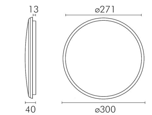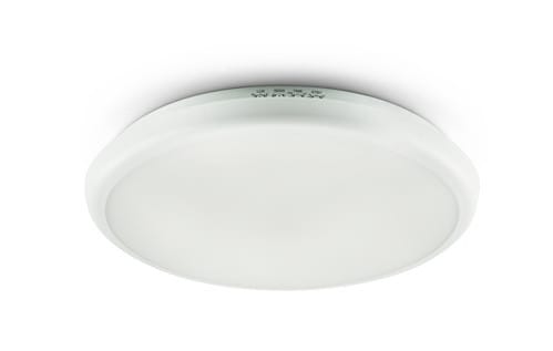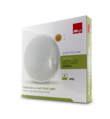 Plafoniera led con sensore di movimento contraddistinto da un design moderno ed essenziale per installazione a plafone o a parete in applicazioni interne o esterne. Si consiglia di non installarle esposte agli agenti atmosferici dirette. Emissione diffusa. Base bianca in materiale plastico e diffusore in policarbonato opale con montaggio a scatto. ** Caratteristiche Generali ** Tempo di vita L70B50: 30000h Numero cicli di accensione: 15000 cicli Rischio fotobiologico: Esente ** Caratteristiche di Illuminazione ** Colore: Bianco naturale Flusso: 2400lm CRI: 80 Angolo di emissione: 120° Starting time: 0.3s Warm-up (95%): 2s ** Caratteristiche Elettriche ** Potenza: 22W Tens. funzionamento AC: 230Vac Tolleranza d'ingresso: ±10% Frequenza: 50-60Hz Dimmerabile: no ** Caratteristiche Sorgente Luminosa ** Temp. Colore: 4000K ** Caratteristiche Meccaniche ** Altezza: 40mm Diametro: ø300mm Fissaggio: Tramite viti Montaggio: A soffitto, A parete Grado di protezione: IP65 Resistenza agli urti: IK10 Materiale corpo: Plastica Colore corpo: Bianco Diffusore: Policarbonato opaco Connessioni: Morsetti a pressione Tipo Controllo: Sensore microonde Orientabile: no ** Regolazioni ** Periodo di accensione: 10s - 12min Livello di luminosità: 3 - 2000lux Sensibilità sensore: 2 - 15m ** Caratteristiche Termiche ** Temp. di funzionamento: -10 / 40°C Il sensore integrato è un rilevatore di movimento a microonde che emette onde elettro-magnetiche ad alta frequenza (5,8GHz) e riceve il loro eco. La trasmissione ad alta frequenza è minore di 0.2mW. ** Caratteristiche sensore ** Spegnimento regolabile: 10sec-12min Livello di luminosità regolabile: 3 - 2000 lux Campo di rilevamento: 180°/360° (Selezionabile) Altezza d'installazione: 1,5-3,5m(Parete), 2-4m (Soffitto) Range di movimento: 5-15m(Parete), 2-8m (Soffitto) ** Attenzione ** Alimentazione in corrente costante. Non modificare o cambiare l'alimentatore integrato. Alimentatori errati danneggiano il prodotto.