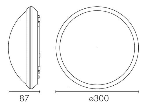 Plafoniera led con sensore di movimento a microonde. Funziona anche da lampada d'emergenza, grazie alla batteria integrata da 1500mA garantisce una autonomia di 5 ore in caso di assenza di rete domestica. Installazione a plafone o a parete in applicazioni interne o esterne.Non installare in zone direttamente esposte agli agenti atmosferici.Emissione diffusa. Base bianca in plastica e diffusore in policarbonato opale con montaggio a scatto.** Caratteristiche Generali **Tempo di vita L70B50: 30000hNumero cicli di accensione: 15000 cicliRischio fotobiologico: Esente** Caratteristiche di Illuminazione **Colore: Bianco naturaleFlusso: 1200lmCRI: 80Angolo di emissione: 120°** Caratteristiche Elettriche **Potenza: 16WTens. funzionamento AC: 230VacTolleranza d'ingresso: ±10%Frequenza: 50-60HzDimmerabile: noClasse isolamento: IAlimentatore: Integrato** Caratteristiche Sorgente Luminosa **Temp. Colore: 4000K** Caratteristiche Meccaniche **Altezza: 87mmDiametro: ø300mmFissaggio: Tramite vitiMontaggio: A soffitto, A pareteGrado di protezione: IP66Materiale corpo: PlasticaColore corpo: BiancoDiffusore: Policarbonato opacoConnessioni: Morsetti a pressioneTipo Controllo: Funzione emergenza, Sensore microondeOrientabile: no** Regolazioni **Periodo di accensione: 10s - 12min** Caratteristiche Termiche **Temp. di funzionamento: -10 / 40°C** Caratteristiche sensore di movimento integrato: **Rilevatore di movimento a microonde che emette onde elettro-magnetiche ad alta frequenza (5,8GHz) e riceve il loro eco.Spegnimento regolabile: 10sec-12minCampo di rilevamento: 360°Altezza d'installazione: 1,5-3,5m(Parete), 2-4m (Soffitto)Range di movimento: 5-15m(Parete), raggio 2-8m (Soffitto)** Caratteristiche lampada d'emergenza: **Batteria al litio inclusa: 3,7V 1500mAhConsumo in emergenza: 1,2WFlusso in emergenza: 80lmAutonomia: 5h** Attenzione **Alimentazione in corrente costante.Non modificare o cambiare l'alimentatore integrato.Alimentatori errati danneggiano il prodotto.