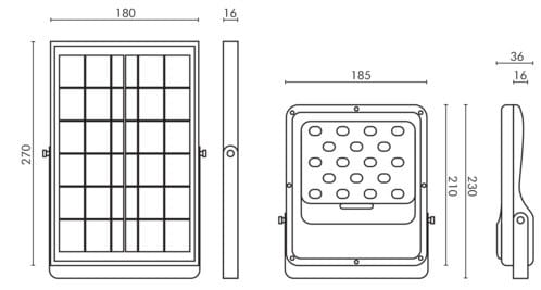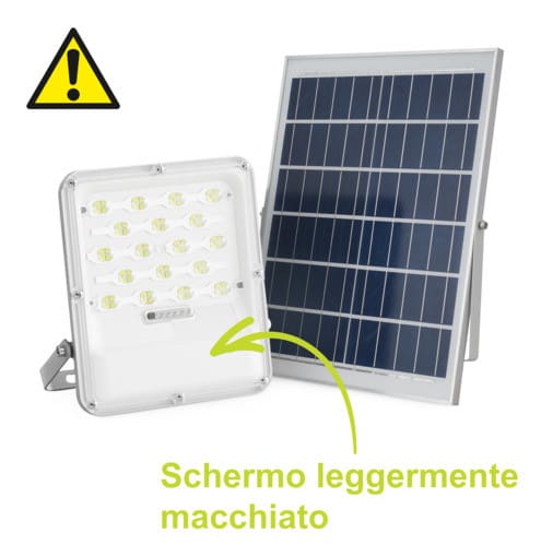 ** Caratteristiche Generali **Tempo di vita L70B50: 20000hNumero cicli di accensione: 10000 cicliRischio fotobiologico: Esente** Caratteristiche di Illuminazione **Colore: Bianco naturaleFlusso: 1800lmCRI: 80Angolo di emissione: 120°** Caratteristiche Elettriche **Potenza: 12WDimmerabile: no** Caratteristiche Sorgente Luminosa **Temp. Colore: 4000K** Caratteristiche Meccaniche **Fissaggio: Staffe Incluse, Tramite vitiMontaggio: A pareteGrado di protezione: IP65Materiale corpo: Alluminio verniciatoColore corpo: GrigioDiffusore: Policarbonato trasp.Connessioni: Connettori e cavetti inclusiLunghezza cavo: 4.5mOrientabile: si** Caratteristiche Termiche **Temp. di funzionamento: -10 / 40°C** Caratteristiche Batteria **Pacco batteria incluso: 1800mAh Li-Ion 18650Durata: 6h (100% luminosità), 10h (50% luminosità)Tempo di ricarica: 6h** Caratteristiche Pannello solare **Potenza: 20WTensione Voc: 6VLunghezza cavo: 4,5m** Caratteristiche PIR **Angolo: 120°Area di rilevamento: 8mAltezza di installazione: Max 4m** Modalità di funzionamento **ON mode: premere il pulsante, la lampada si accenderà al 100%OFF mode:premere il pulsante, la lampada si spegnerà totalmenteAUTO mode: premere il pulsante, la lampada si accenderà automaticamente di notte e si spegnerà di giorno. Durante la notte, la lampada, regolerà automaticamente la luminosità in base alla tabella degli orari.** Contenuto confezione: **- Proiettore + Pannello solare;- Telecomando (batterie incluse)- Kit di fissaggio;- Istruzioni