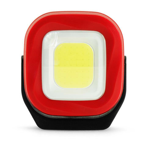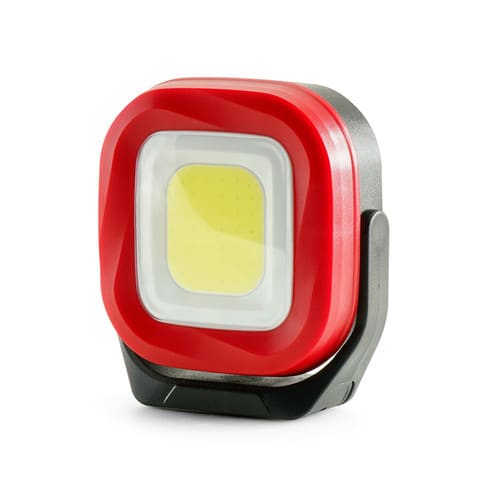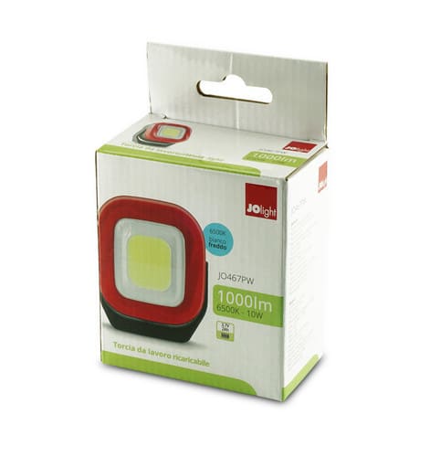 Pratica torcia a batteria orientabile.Tramite il selettore posto sul retro sarà possibile scegliere la modalità di funzionamento.Modalità di funzionamento: 50%, 100%, Flash, SOS.La sua batteria 18650 da 2000mAh offre un'autonomia di 2 ore quando è presente la modalità di funzionamento al 100% e di 5 ore in modalità 50%.LED di segnalazione stato di batteria sul retro.La staffa comprende dei potenti magneti per poter fissare agevolmente la torcia ad una superficie metallica.** Caratteristiche Generali **Tempo di vita L70B50: 20000hNumero cicli di accensione: 15000 cicliTipo di led: COBRischio fotobiologico: Esente** Caratteristiche di Illuminazione **Colore: Bianco freddoFlusso: 1000lm** Caratteristiche Elettriche **Potenza: 10WDimmerabile: noAlimentatore: Esterno (non incluso)** Caratteristiche Sorgente Luminosa **Temp. Colore: 6500K** Caratteristiche Meccaniche **Lunghezza: 95mmLarghezza: 41.5mmAltezza: 106mmFissaggio: Staffe IncluseGrado di protezione: IP44Resistenza agli urti: IK08Materiale corpo: ABSColore corpo: RossoLente: NessunaTipo Controllo: Interruttore integrato** Caratteristiche Termiche **Temp. di funzionamento: -10 / 40°CConnettore di ricarica USB tipo "C"1m incluso.Alimentatore NON Incluso: 5V 1A.