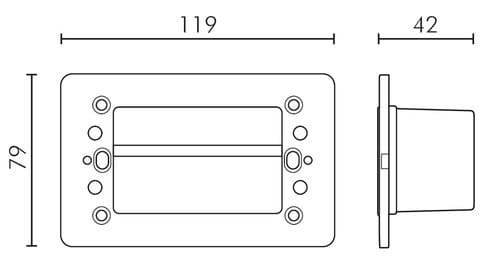 ** Caratteristiche Generali **Tempo di vita L70B50: 20000hNumero cicli di accensione: 15000 cicliTipo di led: COBNumero Led: 1Rischio fotobiologico: Esente** Caratteristiche di Illuminazione **Colore: Bianco naturaleFlusso: 150lmCRI: 90Angolo di emissione: 80°** Caratteristiche Elettriche **Potenza: 2WTens. funzionamento AC: 230VacTolleranza d'ingresso: ±10%Frequenza: 50-60HzDimmerabile: noClasse isolamento: IIAlimentatore: Integrato** Caratteristiche Sorgente Luminosa **Temp. Colore: 4000K** Caratteristiche Meccaniche **Lunghezza: 42mmLarghezza: 119mmAltezza: 79mmFissaggio: Tramite vitiMontaggio: A parete, IncassoGrado di protezione: IP65Materiale corpo: PlasticaColore corpo: NeroDiffusore: PlasticaConnessioni: Cavo liberoLunghezza cavo: 0.2mOrientabile: no** Caratteristiche Termiche **Temp. di funzionamento: -10 / 40°C