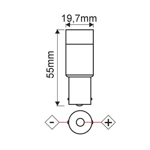 ** Caratteristiche Generali **Sostituisce: P21WTempo di vita L70B50: 20000hNumero cicli di accensione: 10000 cicliFattore di sopravvivenza: 0.9Tipo di led: smd 2835Numero Led: 3Rischio fotobiologico: Esente** Caratteristiche di Illuminazione **Colore: Bianco freddoFlusso: 210lmCRI: 80Angolo di emissione: 360°Starting time: 0.2sFattore mantenimento flusso: 0.96Uniformità colore (SDCM): 6** Caratteristiche Elettriche **Classe energetica: FPotenza: 2WTens. funzionamento DC: 12Vdc (10‑30Vdc)Dimmerabile: no** Caratteristiche Sorgente Luminosa **Temp. Colore: 6500K** Caratteristiche Meccaniche **Attacco: BA15sLunghezza: 55mmLarghezza: 20mmAltezza: 20mmDiametro: ø19.7mm** Caratteristiche Termiche **Temp. di funzionamento: -20 / 40°C** Attenzione **Non utilizzare con dimmer o trasformatori elettronici.