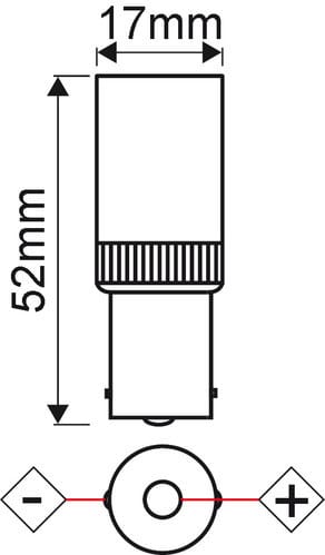 ** Caratteristiche Generali ** Tempo di vita L70B50: 20000h Numero cicli di accensione: 10000 cicli Fattore di sopravvivenza: 0.9 Tipo di led: smd 2835 Numero Led: 51 Rischio fotobiologico: Esente ** Caratteristiche di Illuminazione ** Colore: Bianco naturale Flusso: 290lm CRI: 80 Angolo di emissione: 360° Starting time: 0.1s Fattore mantenimento flusso: 0.95 Uniformità colore (SDCM): 6 ** Caratteristiche Elettriche ** Classe energetica: G Potenza: 3.5W Tens. funzionamento DC: 10‑30Vdc Tens. funzionamento AC: 24Vac Frequenza: 50Hz/20KHz Dimmerabile: no ** Caratteristiche Sorgente Luminosa ** Temp. Colore: 4000K ** Caratteristiche Meccaniche ** Attacco: BA15s Lunghezza: 17mm Larghezza: 17mm Altezza: 52mm Diametro: ø17mm Diffusore: Plastica ** Caratteristiche Termiche ** Temp. di funzionamento: -10 / 40°C