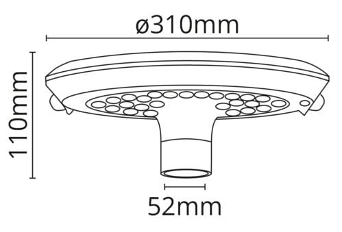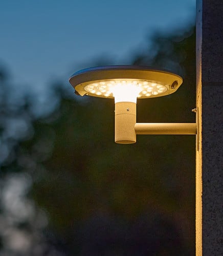 ** Caratteristiche Generali **Tempo di vita L70B50: 20000hNumero cicli di accensione: 15000 cicliRischio fotobiologico: Esente** Caratteristiche di Illuminazione **Colore: Bianco caldoFlusso: 2000lmCRI: 80Angolo di emissione: 120°** Caratteristiche Elettriche **Potenza: 20WDimmerabile: no** Caratteristiche Sorgente Luminosa **Temp. Colore: 3000K** Caratteristiche Meccaniche **Altezza: 110mmDiametro: ø310mmGrado di protezione: IP54Materiale corpo: Alluminio verniciatoColore corpo: Grigio antraciteTipo Controllo: Sensore PIROrientabile: no** Caratteristiche Termiche **Temp. di funzionamento: -10 / 40°C** Caratteristiche Batteria **Pacco batteria incluso: Li-Ion 18650 8000mAhDurata: 6h (100% luminosità), 10h (30% luminosità)Tempo di ricarica: 8h** Caratteristiche Pannello solare **Potenza: 6,5WTensione Voc: 5,5V** Caratteristiche PIR **Angolo: 120°+120°Area di rilevamento: 7mAltezza di installazione: Max 2,7m** Modalità di funzionamento **Modalità 1: premere il pulsante una prima volta. Il lampione si accende e lampeggia una volta.5% di luminosità, quando rileva un movimento passa al 100% e 30 secondi dopo l’ultimo rilevamento torna al 5%Modalità 2: Premere il pulsante una seconda volta. Il lampione lampeggia due volte.Spento, quando rileva un movimento passa al 100% della luminosità e 30 secondi dopo l’ultimo rilevamento si spegne.Modalità 3: Premere il pulsante una terza volta. Il lampione lampeggia tre volte.Tempo totale di accensione di 6 ore così suddiviso: 1ah 30% di luminosità, 2a-3ah 24% di luminosità, 4a-5a-6ah 15% di luminosità, poi si spegne** Contenuto confezione: **- Lampione;- Chiave a brugola;- Grani di fissaggio- Istruzioni