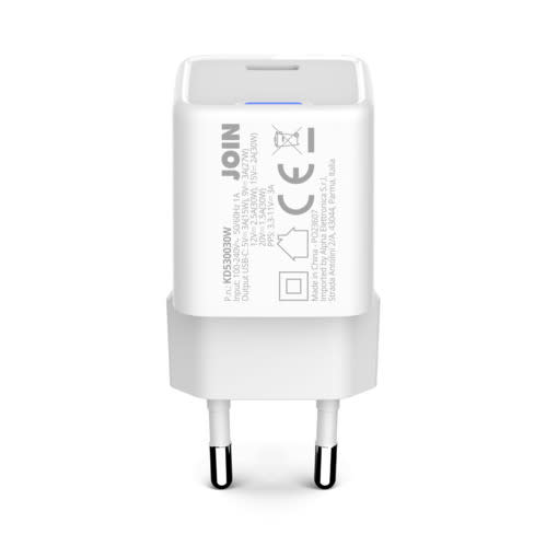 ** Caratteristiche Generali **Tecnologia: switchingCostruzione: pluginTipo regolazione: CC + CVClasse isolamento: IICarica rapida: Power Delivery 3.0Grado Protezione: IP20** Caratteristiche Elettriche **Tensione d'ingresso: 100‑240VacTolleranza d'ingresso: -10% +6%Frequenza: 50/60HzPotenza: 30WCorrente d'uscita: 3000mATensione d'uscita: 5 - 20VProtezioni: sovraccarico, sovratensione, corto circuito** Caratteristiche Meccaniche **Dimensioni (LxWxH): 72.35 x 32.95 x 31.7mmRaffreddamento: passivoMateriale contenitore: PlasticoColore: BiancoCavo d'uscita: nessunoConnettori: USB tipo"C"** Caratteristiche Termiche **Temperatura di lavoro: 0/40°C