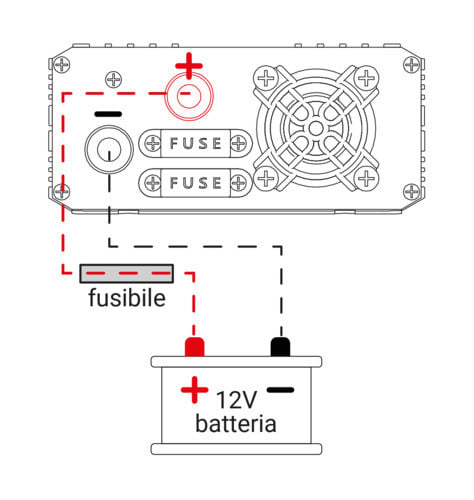 Cavo d'ingresso: Una coppia di cavi rosso-nero 4mm²/11AWG 1m