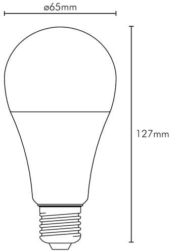 ** Caratteristiche Generali **Tipo lampada: BulboTempo di vita L70B50: 15000hNumero cicli di accensione: 10000 cicliFattore di sopravvivenza: 0.9Rischio fotobiologico: Esente** Caratteristiche di Illuminazione **Colore: Bianco naturaleFlusso: 1550lmCRI: 80Starting time: 0.2sFattore mantenimento flusso: 0.96Uniformità colore (SDCM): 6** Caratteristiche Elettriche **Classe energetica: FPotenza: 15WFattore di sfasamento DF: 0.7Tens. funzionamento AC: 230VacTolleranza d'ingresso: ±10%Frequenza: 50-60HzDimmerabile: no** Caratteristiche Sorgente Luminosa **Temp. Colore: 4000K** Caratteristiche Meccaniche **Attacco: E27Lunghezza: 65mmLarghezza: 65mmAltezza: 127mmDiametro: ø65mmColore corpo: BiancoDiffusore: Policarbonato opaco** Caratteristiche Termiche **Temp. di funzionamento: -10 / 40°C