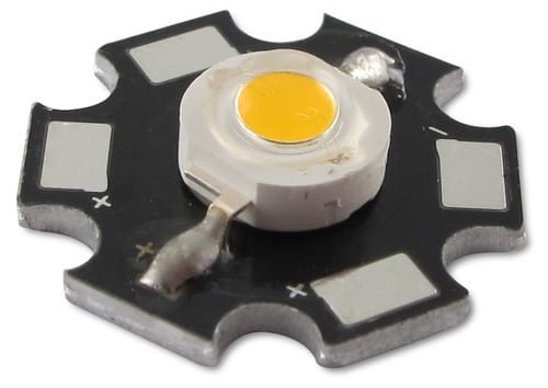** Caratteristiche Generali **Tipo di led: Star** Caratteristiche di Illuminazione **Colore: Bianco freddoFlusso: 75lmCRI: 70Angolo di emissione: 140°** Caratteristiche Elettriche **Potenza: 1WCorrente ingresso max: 350mATens. funzionamento DC: 3.4Vdc (3‑4Vdc)** Caratteristiche Sorgente Luminosa **Temp. Colore: 6000K** Caratteristiche Meccaniche **Diametro: ø19.1mm** Caratteristiche Termiche **Temp. di funzionamento: -10 / 70°CPAD Termico consigliato: LL2011-PAD** Attenzione**Alimentare solo a corrente limitata.Utilizzare un dissipatore adeguato.** Alimentatori consigliati: **Da 1 a 4 led in serie: KL832-02Per 5 led in serie: KL836-02