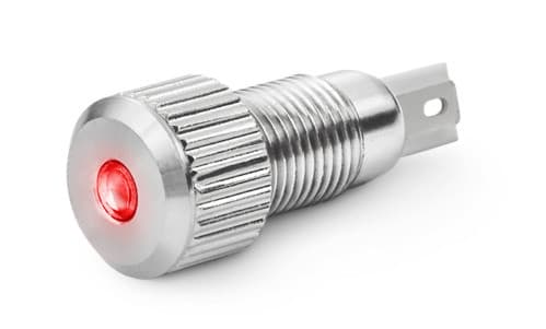 ** Caratteristiche Generali **Tempo di vita L70B50: 50000hTipo di led: 5mm** Caratteristiche di Illuminazione **Colore: Rosso** Caratteristiche Elettriche **Corrente ingresso max: 15mATens. funzionamento DC: 24Vdc** Caratteristiche Meccaniche **Numero di pin: 2Lunghezza: 27.2mmDiametro: ø11mmMontaggio: a pannelloForo incasso: ø8mmGrado di protezione: IP65Materiale corpo: Ottone nichelatoColore corpo: LucidoConnessioni: a saldare** Caratteristiche Termiche **Temp. di funzionamento: -10 / 40°C